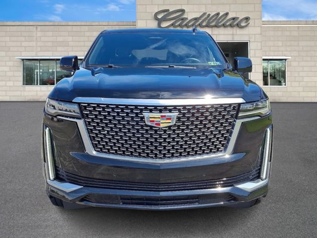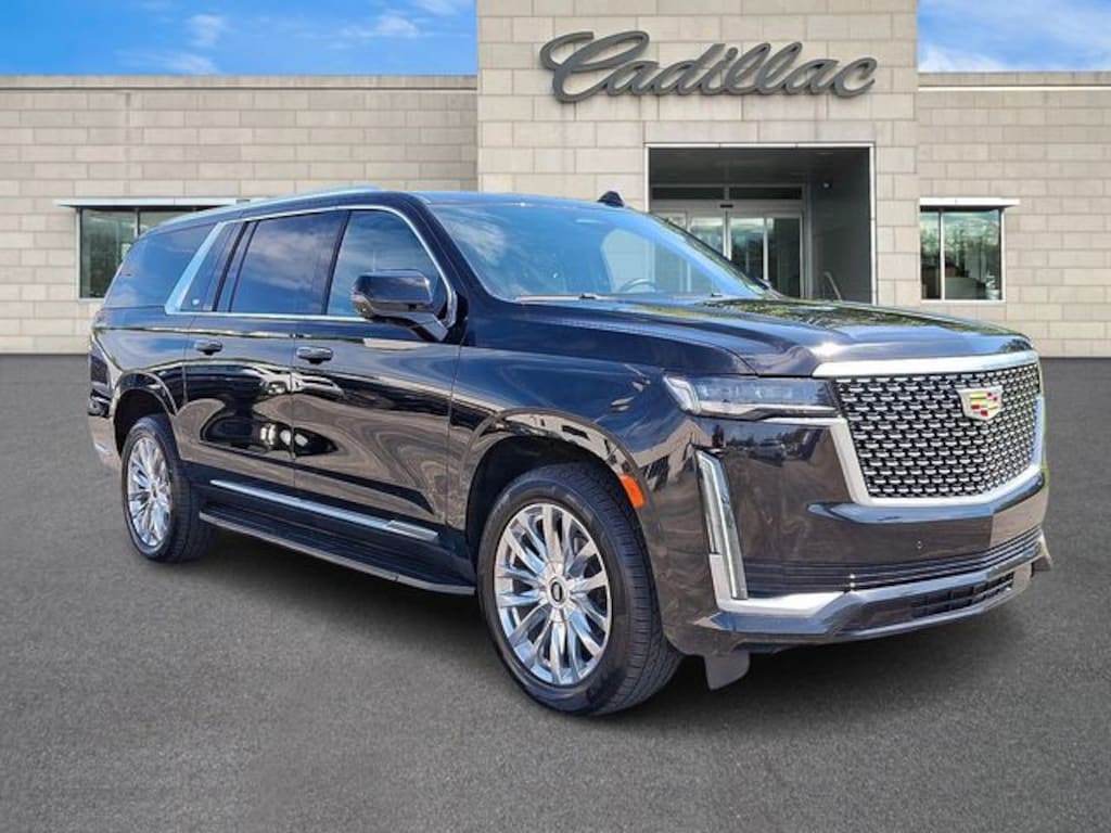 AWD, 16.9" Diagonal OLED Infotainment Screen, 19 Speakers, 2-Presets Memory For Driver Seat Adjuster, 2-Way Driver Power Lumbar Seat Adjuster, 2-Way Front Passenger Power Lumbar Seat Adjuster, 3.23 Axle Ratio, 3rd row seats: split-bench, 4-Way Power Driver Lumbar Seat Adjuster, 4-Way Power Front Passenger Lumbar Seat Adjuster, 4-Wheel Disc Brakes, 8-Way Power Driver Seat Adjuster, 8-Way Power Front Passenger Seat Adjuster, ABS brakes, Adaptive Cruise Control, Air Conditioning, AKG Studio 19-Speaker Audio System, Alloy wheels, AM/FM radio: SiriusXM with 360L, Apple CarPlay/Android Auto, Audio memory, Auto High-beam Headlights, Auto tilt-away steering wheel, Auto-dimming door mirrors, Automatic Seat Belt Tightening, Automatic temperature control, Brake assist, Bumpers: body-color, Compass, Delay-off headlights, Door Lock & Latch Shields, Driver door bin, Driver vanity mirror, Dual front impact airbags, Dual front side impact airbags, Electronic Stability Control, Emergency communication system: OnStar and Cadillac connected services capable, Enhanced Automatic Emergency Braking, Enhanced Automatic Parking Assist, Exterior Parking Camera Rear, Four wheel independent suspension, Front anti-roll bar, Front Bucket Seats, Front Center Armrest w/Storage, Front dual zone A/C, Front reading lights, Fully automatic headlights, Garage door transmitter, Glass Breakage Sensor, HD Radio, Heads-Up Display, Heated & Ventilated Driver & Front Passenger Seats, Heated door mirrors, Heated Driver & Front Passenger Seats, Heated front seats, Heated rear seats, Heated steering wheel, Illuminated entry, Lane Change Alert w/Side Blind Zone Alert, Leather Seating Surfaces w/Mini-Chevron Perf Inserts, Low tire pressure warning, Mechanical Limited-Slip Differential, Memory seat, Navigation System, Not Equipped w/2nd Row Express-Up Window Control, Not Equipped w/4-Way Driver & Fr Pass Pwr Lumbar, Occupant sensing airbag, Outside temperature display, Overhead airbag, Overhead console, Panic alarm, Passenger door bin, Passenger vanity mirror, Power door mirrors, Power driver seat, Power Liftgate, Power moonroof, Power Panoramic Tilt-Sliding Sunroof, Power passenger seat, Power steering, Power windows, Preferred Equipment Group 1SB, Premium Smooth Ride Suspension, Radio data system, Radio: AM/FM w/Navigation, Rain sensing wipers, Rear air conditioning, Rear anti-roll bar, Rear Camera Mirror, Rear Camera Mirror Washer, Rear Cross Traffic Alert, Rear reading lights, Rear window defroster, Rear window wiper, Reconfigurable Full-Color Head-Up Display, Remote keyless entry, Reverse Automatic Braking, Running Board Assist Steps, Security system, SiriusXM w/360L, Speed control, Split folding rear seat, Spoiler, Steering wheel memory, Steering wheel mounted audio controls, Super Cruise, Tachometer, Teen Driver, Telescoping steering wheel, Theft-Deterrent Alarm System, Tilt steering wheel, Traction control, Trip computer, Turn signal indicator mirrors, Variably intermittent wipers, Vehicle Inclination Sensor, Vehicle Interior Movement Sensor, Ventilated front seats, Voltmeter, Wheel Locks, Wheels: 22" 14-Spoke Alloy w/Polished Finish, Wireless Apple CarPlay/Wireless Android Auto, AWD. Clean CARFAX. CARFAX One-Owner. Black Raven 2023 Cadillac Escalade ESV Premium AWD 10-Speed Automatic 6.2L V8