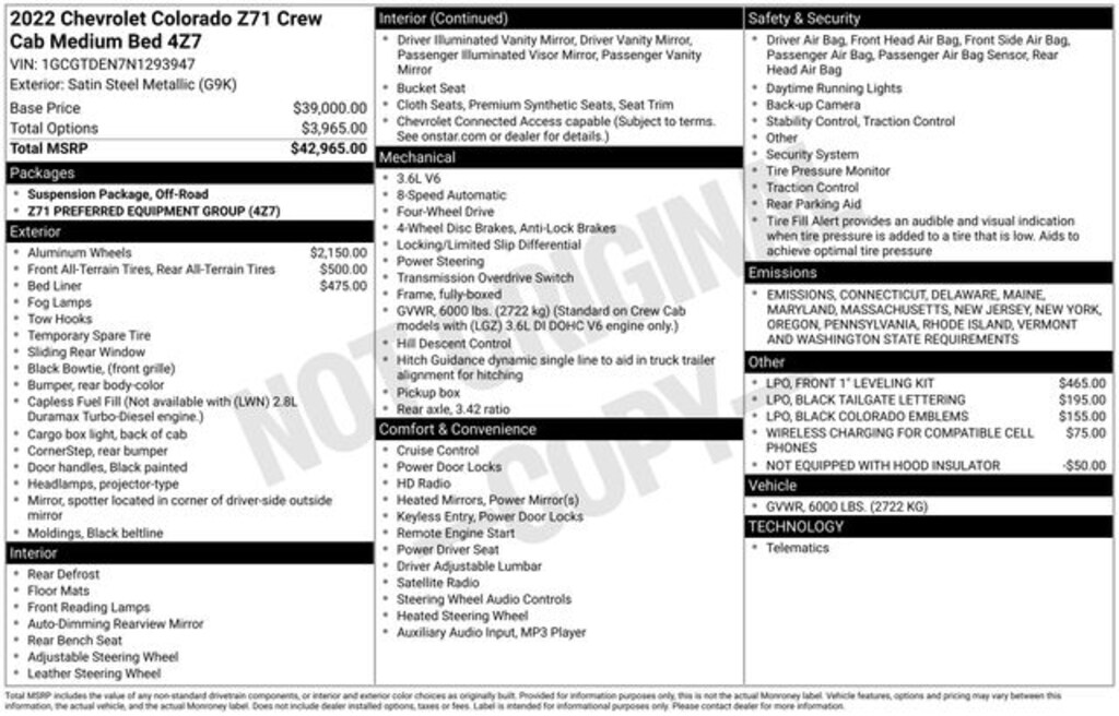 Z71 4WD 8-Speed Automatic V6 GM Details: