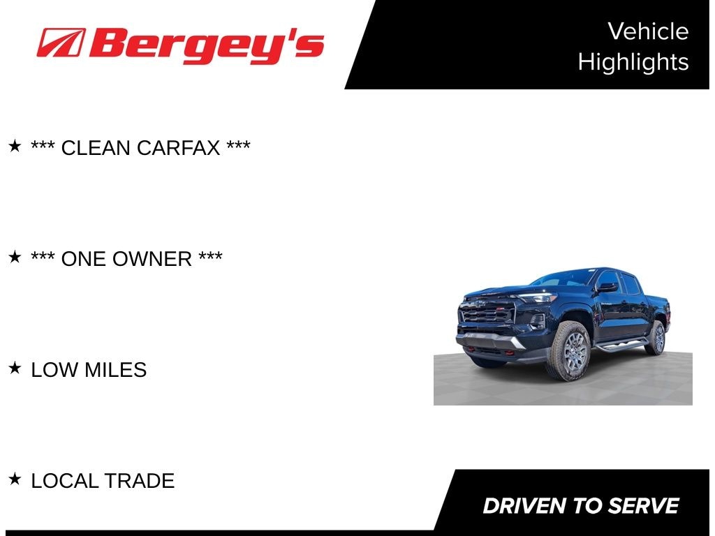 Whether youre cruising down County Line Road, towing your boat on LakeNockamixon, or simply enjoying the streets of Sellersville, the 2024 Colorado Z71 at Bergeys is your best ride for performance, practicality, and style. Stop by today and let your next adventure start with this capable powerhouse!