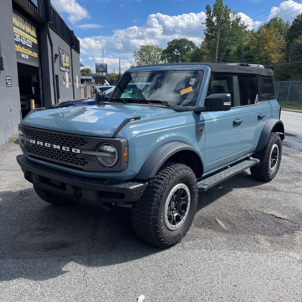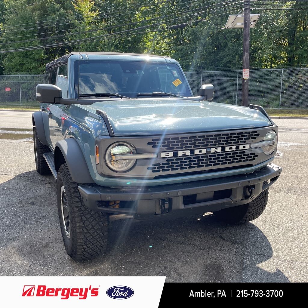 Tackling rugged terrain doesn't mean you cant be comfortable behind the wheel of this feature packed Certified Bronco Badlands. This One Owner Bronco has a clean CarFax with a thorough maintenance history. The powerful 2.7L EcoBoost V6 engine produces 330 HP and 415 lb-ft of torque, and is mated to a 10 speed automatic transmission. The Area 51 paint is accented by the luxurious Black Leather Trimmed Seats. An amazing Sasquatch Package offers 17" black-painted aluminum beadlock-capable wheels with 35" LT315/70R17 BSW mud-terrain tires, electronic-locking front and rear axles, 4.7 final drive ratio, high-clearance suspension, BILSTEIN position-sensitive shock absorbers, and high-clearance fender flares. The Terrain Management with G.O.A.T modes allows you to select a range of traction options when going off road.