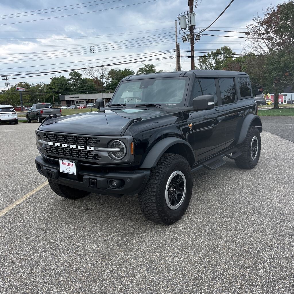 When the going gets rough, you dont have to rough it behind the wheel of this feature packed Certified Hardtop Bronco Badlands Sasquatch. This One Owner Bronco has a clean CarFax with a thorough Ford dealer maintenance history. The powerful 2.7L EcoBoost V6 engine produces 330 HP and 415 lb-ft of torque, and is mated to a 10 speed automatic transmission. The Shadow Black paint is accented by the luxurious Black Leather Trimmed Seats. An amazing Sasquatch Package offers 17" black-painted aluminum beadlock-capable wheels with 35" LT315/70R17 BSW mud-terrain tires, electronic-locking front and rear axles, 4.7 final drive ratio, high-clearance suspension, BILSTEIN position-sensitive shock absorbers, and high-clearance fender flares. The Terrain Management with G.O.A.T modes allows you to select a range of traction options when going off road.