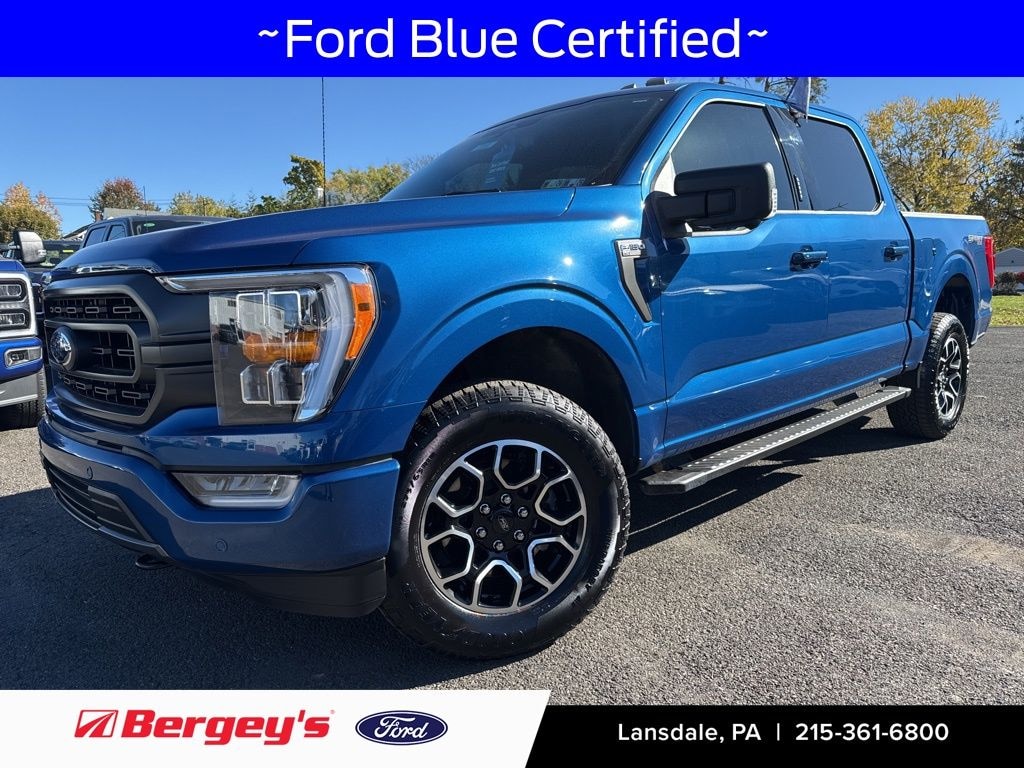Certified. Atlas Blue Metallic 2023 Ford F-150 XLT 4WD 10-Speed Automatic 5.0L V8 1-OWNER, CERTIFIED, 4WD, ABS brakes, Alloy wheels, Compass, Electronic Stability Control, Heated door mirrors, Illuminated entry, Low tire pressure warning, Remote keyless entry, Traction control.