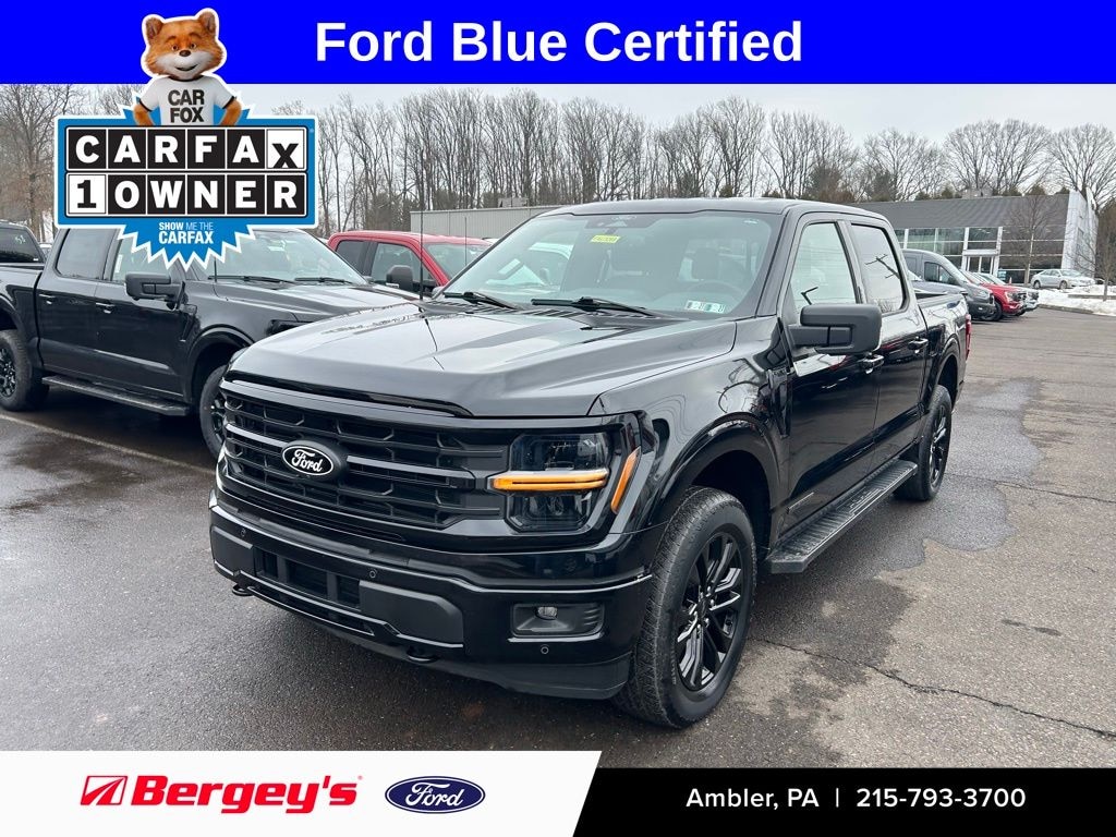 An Advanced Hybrid engine along with dramatic styling and a host of features highlight this Certified F-150 XLT 4WD with the Black Appearance Plus Package. This One Owner truck has a clean CarFax. Powered by Fords premier 3.5L PowerBoost Full Hybrid engine, rated 430 HP and an incredible 570 lb-ft of torque, along with shift on the fly 4WD, you will be ready for any road or off road - situation. The 10 speed transmission provides crisp shifts that enhance performance and economy. Towing is simplified with Pro Trailer Backup Assist and Pro Trailer Hitch Assist in addition to the Tow/Haul Package with a trailer brake controller.