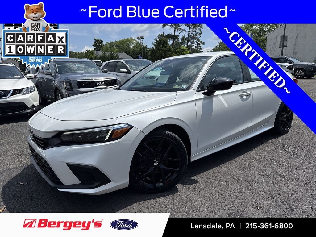 Certified. White 2022 Honda Civic Sport FWD CVT 2.0L I4 DOHC 16V i-VTEC Black Cloth.