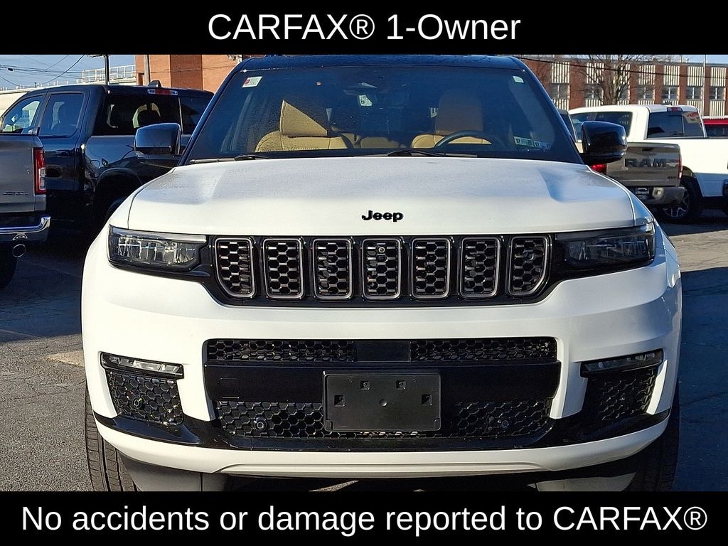 Certified. Bright White Clearcoat 4D Sport Utility CARFAX One-Owner. 2024 Jeep 14/22 City/Highway MPG Grand Cherokee L Summit 4WD 8-Speed Automatic HEMI 5.7L V8 Multi Displacement VVT 1-OWNER, CERTIFIED, CLEAN CARFAX, FRESH OIL CHANGE, NEW PA INSPECTION, PROFESSIONAL DETAIL, 19 Speakers High Performance Audio, 2nd Row Manual Window Shades, 950 Watt Amplifier, Active Noise Control System, Adaptive suspension, Advanced Protech Group IV, Auto-leveling suspension, Deluxe Headliner, Front Passenger Interactive Display, Genuine wood dashboard insert, Genuine wood door panel insert, Gloss Black Exterior Accents, Heads-Up Display, Heated front seats, Heated rear seats, Heated steering wheel, High Altitude Package, Interior Rear Facing Camera, Luxury Tech Group V, MOPAR Finishing Package, MOPAR Front Splash Guards, MOPAR Paint Protection Film, MOPAR Rear Splash Guards w/Jeep Logo, Neutral Gray Exterior Accents, Night Vision/Pedestrian-Animal Detection, Painted Door Cladding, Palermo Leather Door Trim, Palermo Leather Seats, Power Liftgate, Power moonroof, Power passenger seat, Quick Order Package 25U Summit Reserve (DISC), Rain sensing wipers, Rearview Autodim Digital Display Mirror, Speed-Sensitive Wipers, Summit Reserve, Summit Reserve Badge, Traction control, Ventilated front seats, Ventilated Rear Seats, Wheels: 21" x 9" Black Painted Aluminum, Wireless Charging Pad.