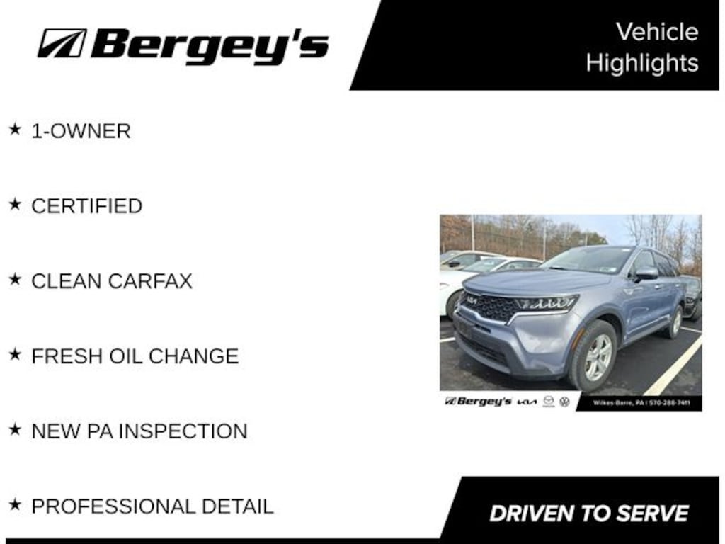 Certified. Everlasting Silver 2023 Kia Sorento LX AWD 8-Speed Automatic 2.5L I4 DGI DOHC 16V LEV3-ULEV70 191hp 1-OWNER, CERTIFIED, CLEAN CARFAX, FRESH OIL CHANGE, NEW PA INSPECTION, PROFESSIONAL DETAIL, AWD.