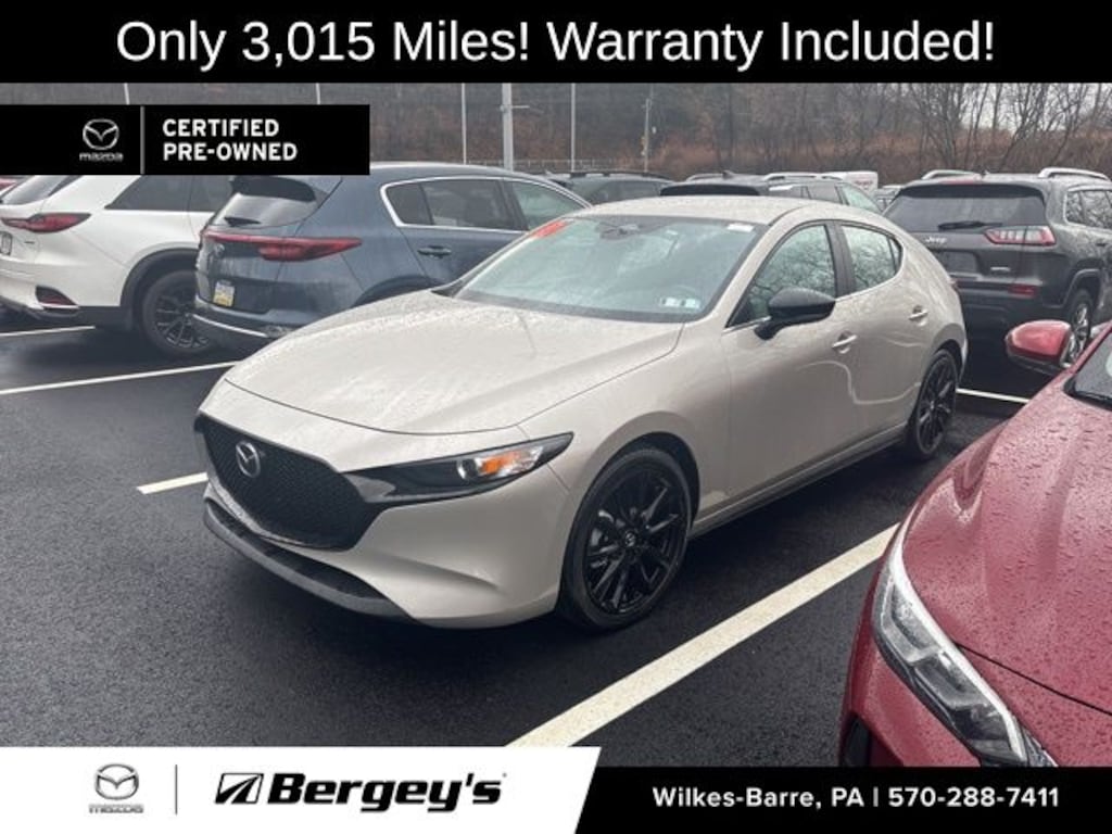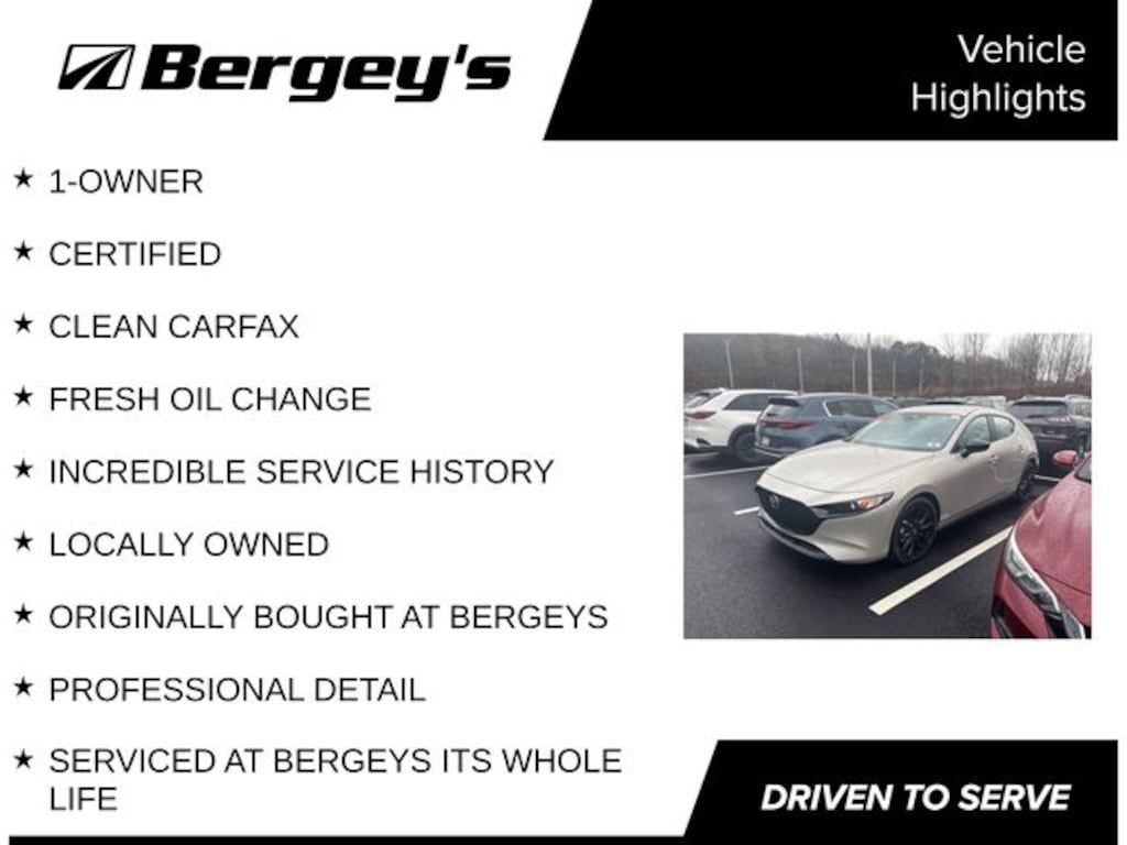 Certified. Platinum Quartz Metallic 2025 Mazda Mazda3 2.5 S Select Sport FWD 6-Speed Automatic SKYACTIV® 2.5L 4-Cylinder DOHC 16V 1-OWNER, CERTIFIED, CLEAN CARFAX, FRESH OIL CHANGE, INCREDIBLE SERVICE HISTORY, LOCALLY OWNED, ORIGINALLY BOUGHT AT BERGEYS, PROFESSIONAL DETAIL, SERVICED AT BERGEYS ITS WHOLE LIFE.