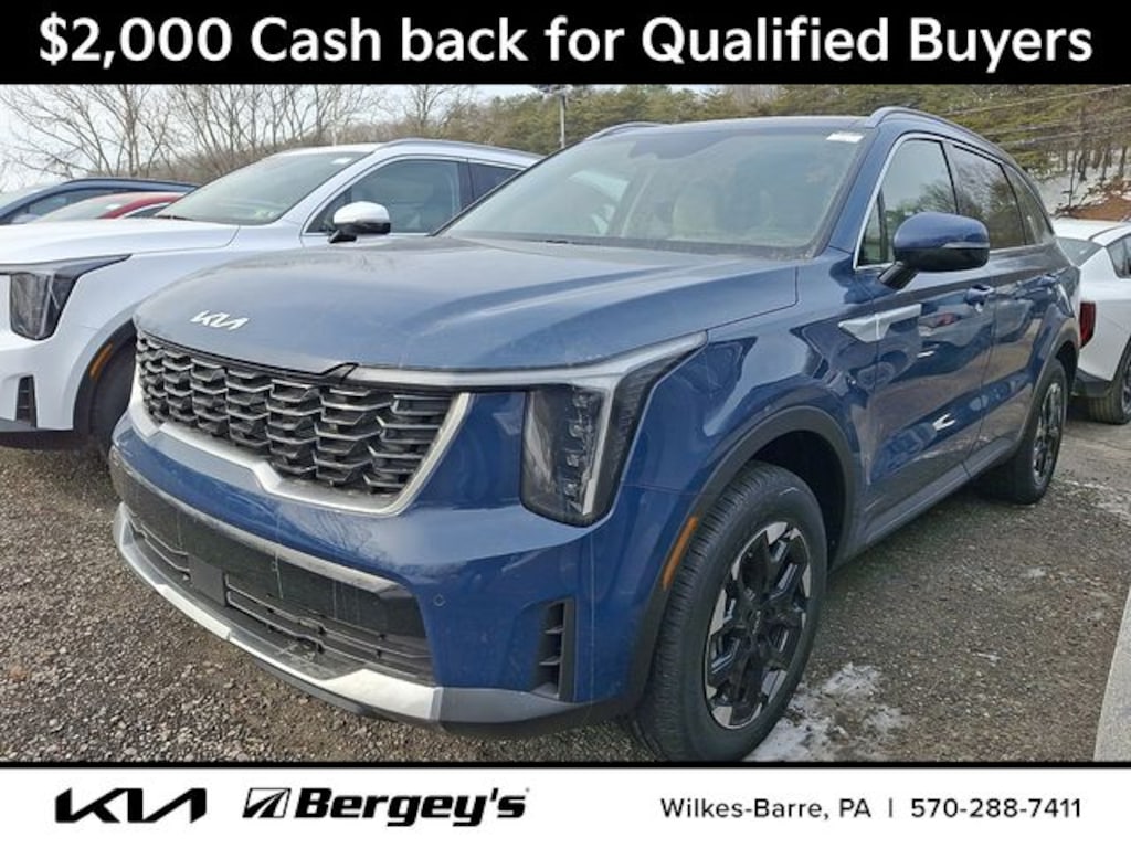 Midnight Lake Blue 2026 Kia Sorento S AWD 8-Speed Automatic 2.5L I4 DGI DOHC 16V LEV3-SULEV30 191hp AWD.