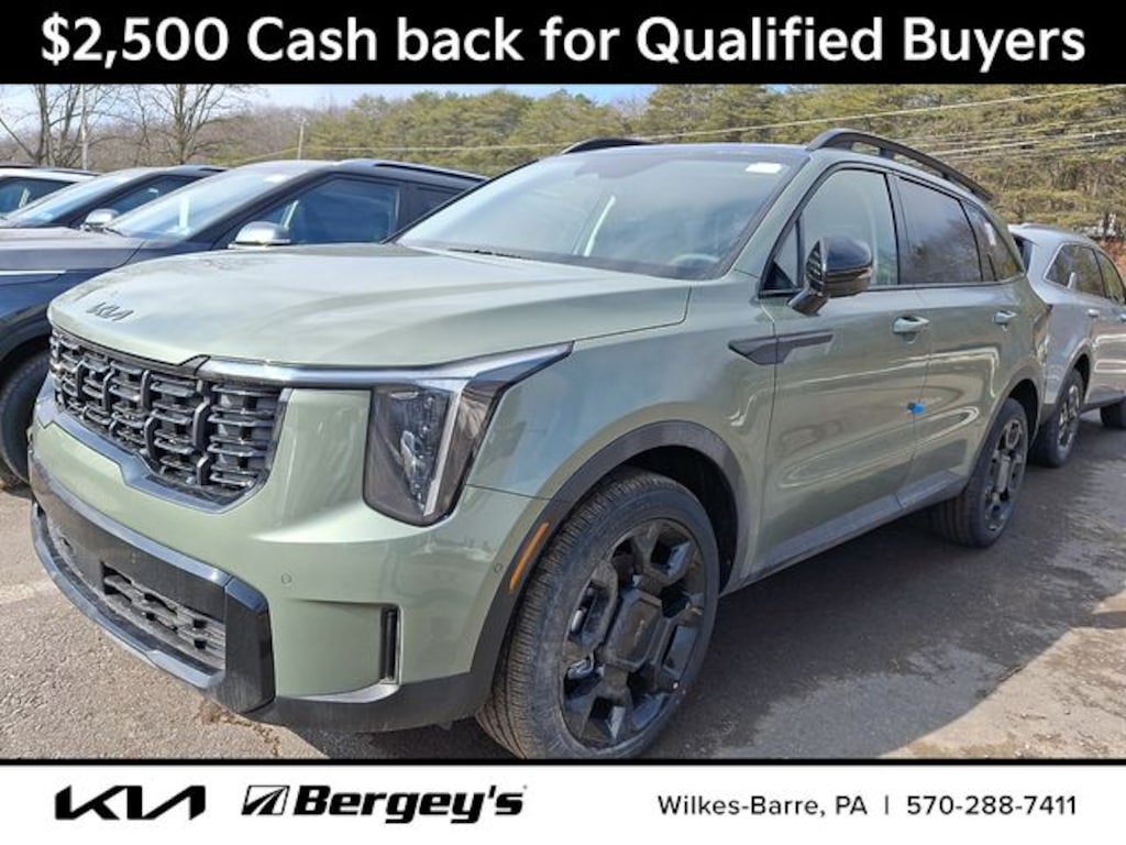 Jungle Green 2026 Kia Sorento X-Line SX AWD 8 Speed Dual Clutch 2.5L I4 DGI Turbocharged DOHC 16V LEV3-SULEV30 281hp AWD.