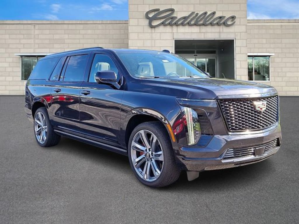 4WD, 2-Presets Memory For Driver Seat Adjuster, 2-Speed Active Transfer Case, 3.23 Axle Ratio, 3rd row seats: split-bench, 4-Way Power Driver Lumbar Seat Adjuster, 4-Way Power Front Passenger Lumbar Seat Adjuster, 4-Wheel Disc Brakes, 8-Way Power Driver Seat Adjuster, 8-Way Power Front Passenger Seat Adjuster, ABS brakes, Adaptive suspension, Air Conditioning, Air Ride Adaptive Suspension, AKG Studio Reference 36-Speaker Audio System, Alloy wheels, AM/FM radio: SiriusXM with 360L, Apple CarPlay/Android Auto, Audio memory, Auto High-beam Headlights, Auto tilt-away steering wheel, Auto-dimming door mirrors, Automatic temperature control, Blind Zone Steering Assist w/Trailering, Brake assist, Bumpers: body-color, Compass, Cooled Console w/Covered Storage, Delay-off headlights, Door Lock & Latch Shields, Driver door bin, Driver Seat Power Bolster, Driver vanity mirror, Dual front impact airbags, Dual front side impact airbags, Electronic Limited-Slip Differential, Electronic Stability Control, Emergency communication system: OnStar Services capable, Exterior Parking Camera Rear, Floor Console w/Covered Storage, Four wheel independent suspension, Front 6-Piston Brembo Brake Upgrade (LPO), Front anti-roll bar, Front Auxiliary 12-volt Power Outlet, Front Bucket Seats, Front Center Armrest w/Storage, Front dual zone A/C, Front Passenger Seat Power Bolster, Front reading lights, Full Semi-Aniline Leather Seats w/Mini-Chevron, Fully automatic headlights, Garage door transmitter, Genuine wood console insert, Genuine wood dashboard insert, Genuine wood door panel insert, Glass Breakage Sensor, Headphones, Heads-Up Display, Heated & Ventilated Driver & Front Passenger Seats, Heated door mirrors, Heated Driver & Front Passenger Seats, Heated front seats, Heated rear seats, Heated steering wheel, Hitch Guidance w/Hitch View, Illuminated entry, Illuminating Front & Rear Sill Plates, Integrated Trailer Brake Controller, Knee airbag, Lane Departure Warning System, Leather steering wheel, Low tire pressure warning, Magnetic Ride Control Suspension, Memory seat, Navigation System, Next Generation Active Noise Cancellation, Night Vision, Night vision lights, Occupant sensing airbag, Outside temperature display, Overhead airbag, Overhead console, Panic alarm, Passenger door bin, Passenger vanity mirror, Platinum Interior Trim, Power door mirrors, Power driver seat, Power Liftgate, Power Lumbar Massage Driver Seat, Power Lumbar Massage Front Passenger Seat, Power moonroof, Power Open/Close Doors, Power Panoramic Tilt-Sliding Sunroof, Power passenger seat, Power steering, Power windows, Power-Retractable Assist Steps, Preferred Equipment Group 1SH, Radio data system, Radio: Infotainment Experience, Rain sensing wipers, Rear air conditioning, Rear anti-roll bar, Rear audio controls, Rear reading lights, Rear Seat Entertainment System, Rear window defroster, Rear window wiper, Reconfigurable Full-Color Head-Up Display, Remote keyless entry, Security system, SiriusXM w/360L Trial Subscription, Smart Trailer Integration Indicator, Soft Closing Front & Rear Doors, Speed control, Split folding rear seat, Spoiler, Steering wheel memory, Steering wheel mounted audio controls, Tachometer, Telescoping steering wheel, Theft-Deterrent Alarm System, Tilt steering wheel, Touring Package, Traction control, Trailering App, Trailering Assist Guidelines, Trip computer, Turn signal indicator mirrors, Variably intermittent wipers, Vehicle Inclination Sensor, Vehicle Interior Movement Sensor, Ventilated front seats, Voltmeter, Wheel Locks, Wheels: 22" 18-Spoke Alloy, Wheels: 24" 7-Spoke Alloy, Wireless Apple CarPlay/Wireless Android Auto, 4WD. Clean CARFAX. Galactic Gray Metallic 2025 Cadillac Escalade ESV Sport Platinum 4WD 10-Speed Automatic 6.2L V8