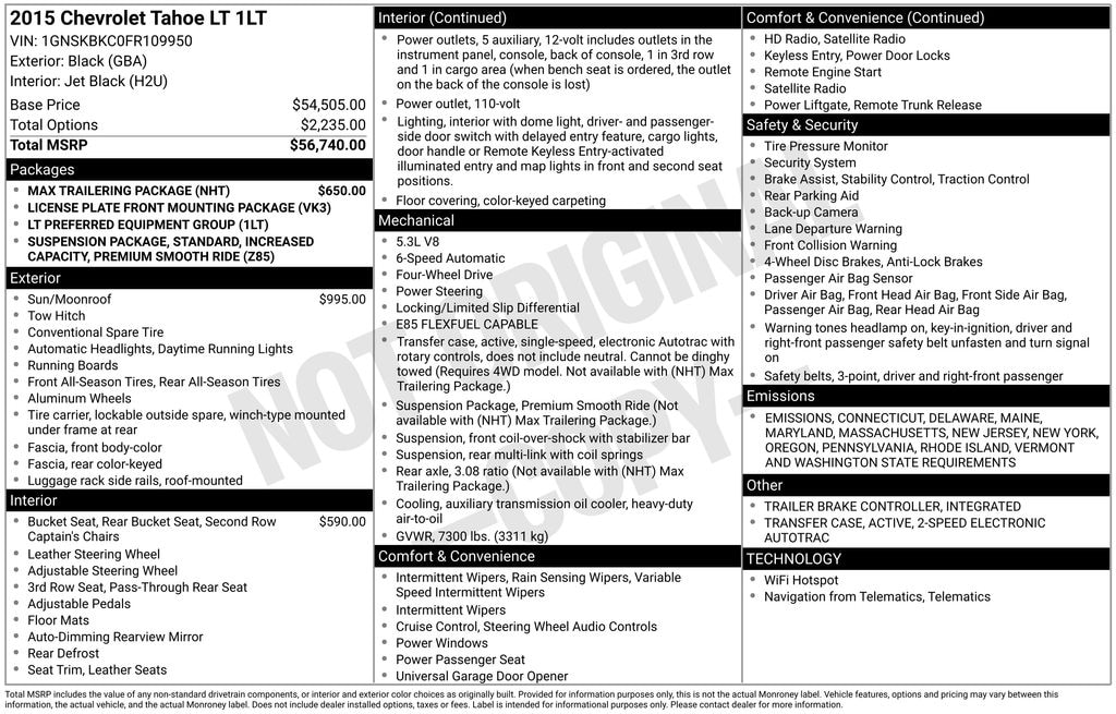 Recent Arrival! Black 2015 Chevrolet Tahoe LT 4WD 6-Speed Automatic Electronic with Overdrive EcoTec3 5.3L V8