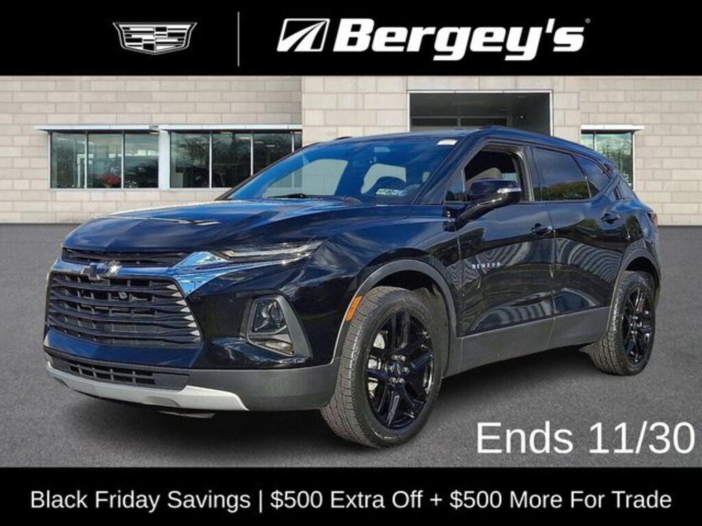 AWD, 170 Amp Alternator, 3.47 Final Drive Axle Ratio, 4-Wheel Disc Brakes, 6 Speakers, 6-Speaker Audio System Feature, ABS brakes, Air Conditioning, Alloy wheels, AM/FM radio: SiriusXM, Apple CarPlay/Android Auto, Auto High-beam Headlights, Automatic temperature control, Black Roof Rails, Brake assist, Bumpers: body-color, Child-Seat-Sensing Airbag, Compass, Convenience & Driver Confidence Package, Delay-off headlights, Driver door bin, Driver vanity mirror, Dual front impact airbags, Dual front side impact airbags, Electronic Stability Control, Emergency communication system: OnStar and Chevrolet connected services capable, Exterior Parking Camera Rear, Four wheel independent suspension, Front & Rear Black Bowties, Front anti-roll bar, Front Bucket Seats, Front Center Armrest, Front dual zone A/C, Front reading lights, Fully automatic headlights, Heated door mirrors, Heated Driver & Front Passenger Seats, High-Intensity Discharge Headlights, Illuminated entry, Inside Rear-View Auto-Dimming Mirror, Knee airbag, Lane Change Alert w/Side Blind Zone Alert, Leather Shift Knob, Low tire pressure warning, Not Equipped w/Rear Park Assist, Occupant sensing airbag, Outside Heated Power-Adjustable Body-Color Mirrors, Outside temperature display, Overhead airbag, Overhead console, Panic alarm, Passenger door bin, Passenger vanity mirror, Power door mirrors, Power driver seat, Power steering, Power windows, Preferred Equipment Group 2LT, Premium Cloth Seat Trim, Radio data system, Radio: Chevrolet Infotainment 3 System, Rear anti-roll bar, Rear Cross Traffic Alert, Rear Park Assist w/Audible Warning, Rear Power Programmable Liftgate, Rear reading lights, Rear seat center armrest, Rear window defroster, Rear window wiper, Remote keyless entry, Remote Start, Ride & Handling Suspension, Security system, SiriusXM Radio, Speed control, Speed-sensing steering, Split folding rear seat, Spoiler, Steering wheel mounted audio controls, Tachometer, Telescoping steering wheel, Tilt steering wheel, Traction control, Trip computer, Universal Home Remote, Variably intermittent wipers, Voltmeter, Wheels: 18" Bright Silver Aluminum, Wheels: 20" Gloss Black Aluminum, AWD. Clean CARFAX. CARFAX One-Owner. Black 2022 Chevrolet Blazer LT AWD 9-Speed Automatic with Overdrive 2.0L Turbocharged