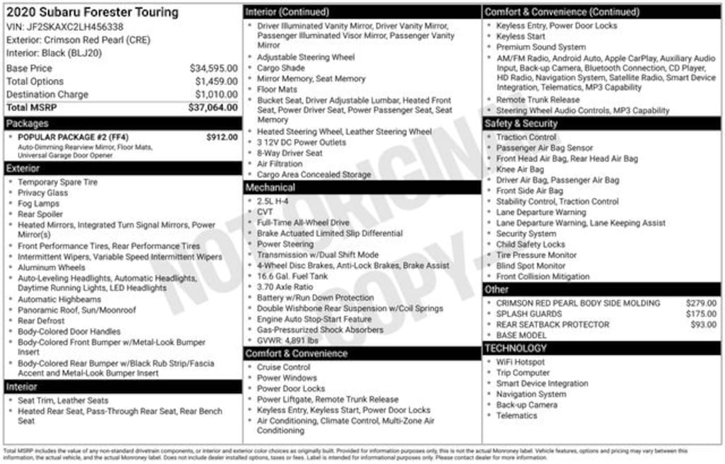 Crimson Red Pearl 2020 Subaru Forester Touring AWD Lineartronic CVT 2.5L 4-Cylinder DOHC 16V VVT