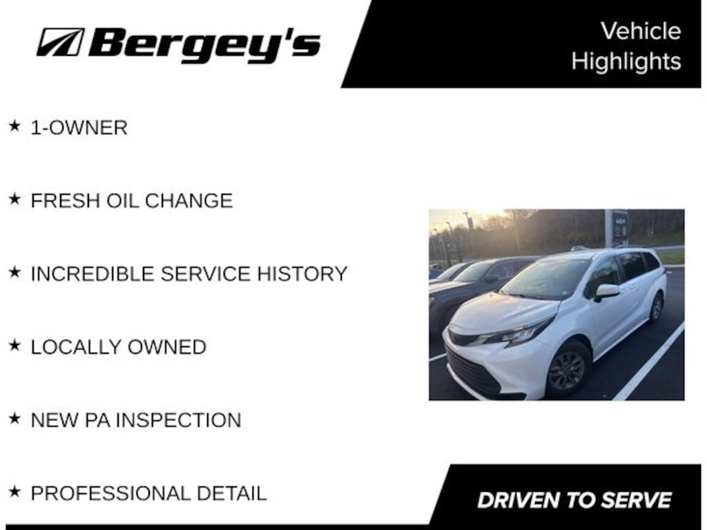This well-appointed Sienna is a true testament to Toyota's renowned quality and reliability. With its impressive performance, versatility, and comprehensive suite of features, it's the perfect vehicle to elevate your family's journeys. Experience the difference for yourself and schedule a test drive today.